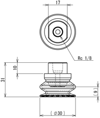 Ventosa 30mm, SQN 30 SI-PT1/8 M (Lisa / Silicone)