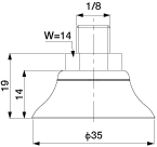 Ventosa 19mm, SFSGA 20 SI-M5 M (Sanfonada / Silicone)